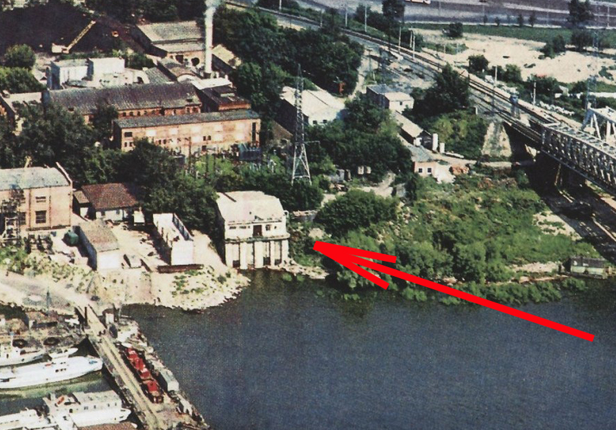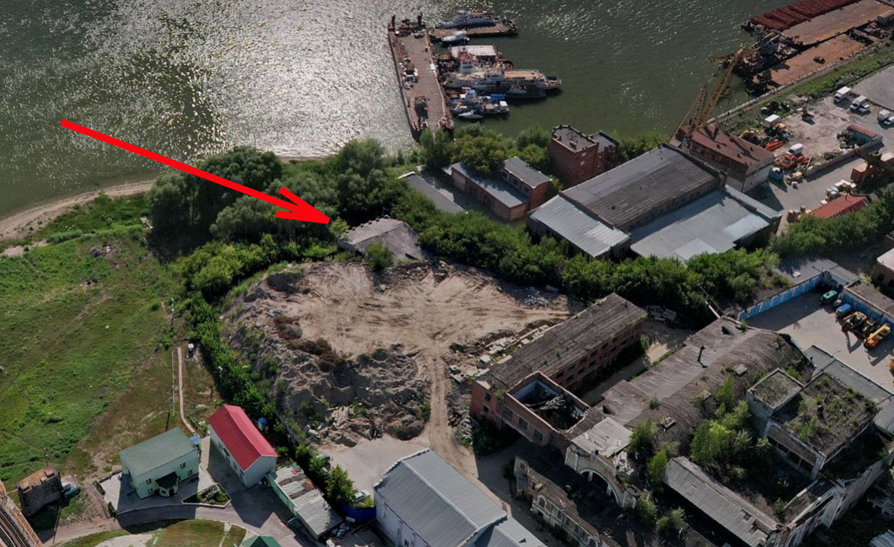 А вот здание насосной станции засыпают помаленьку. Оно сейчас глубоко на берегу. У же по крышу завалили