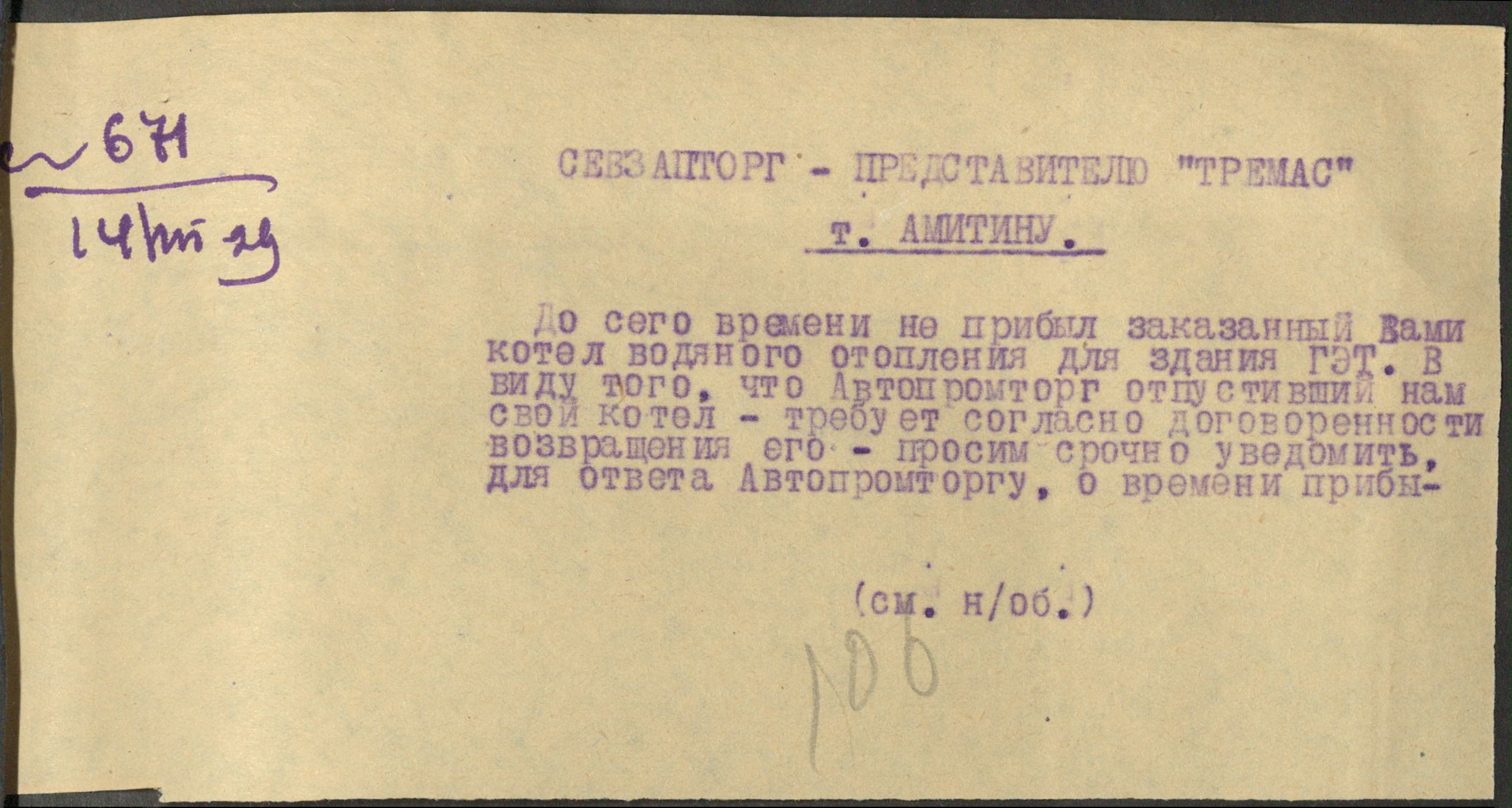 ...печи там не было. В здании запроектировано водяное отопление от водогрейного котла.