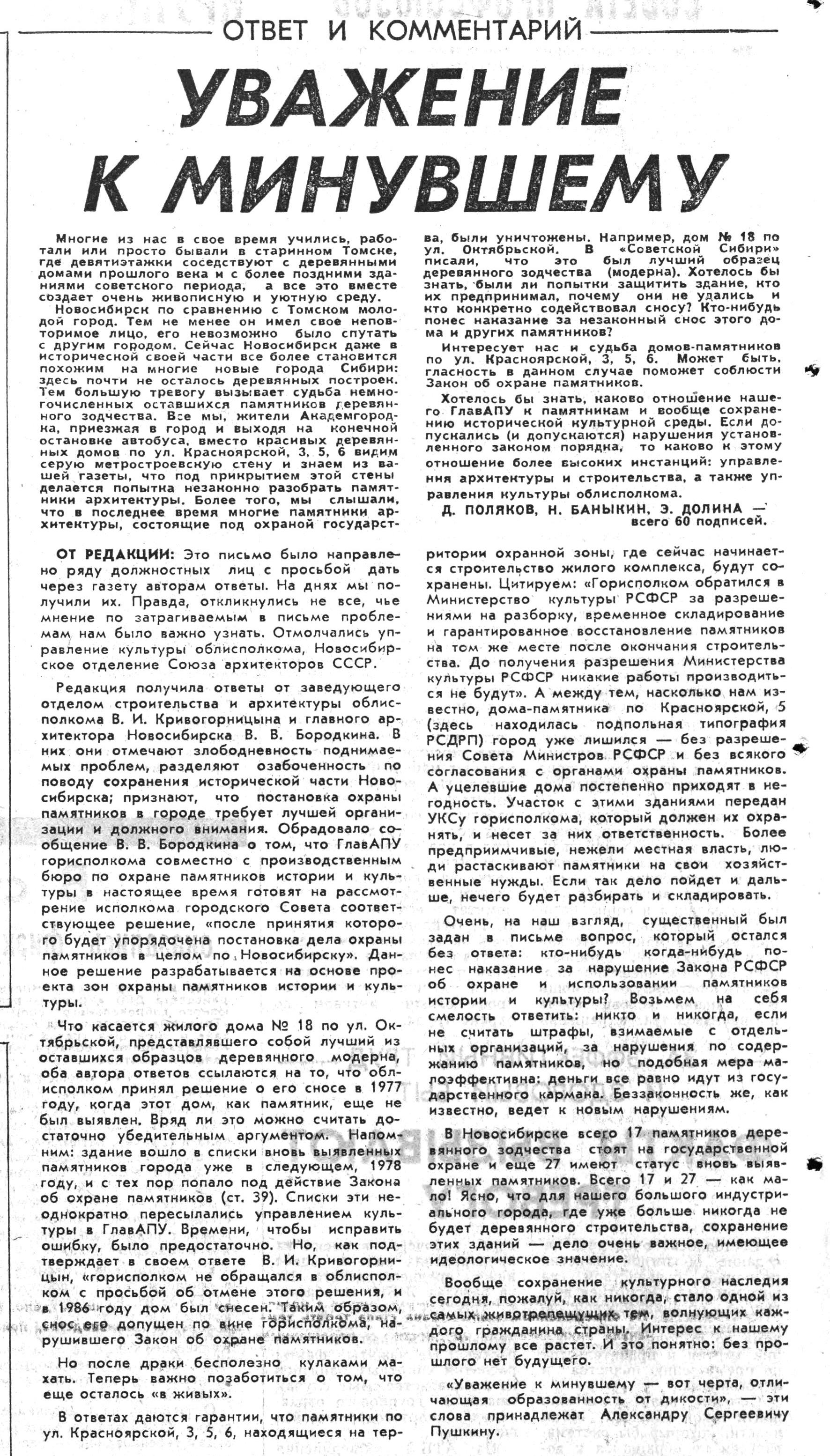 А вот в Академгородке этого старья никогда не было, вот тамошние жители и возмутились, узнавая из газет, что тут в городе творится.