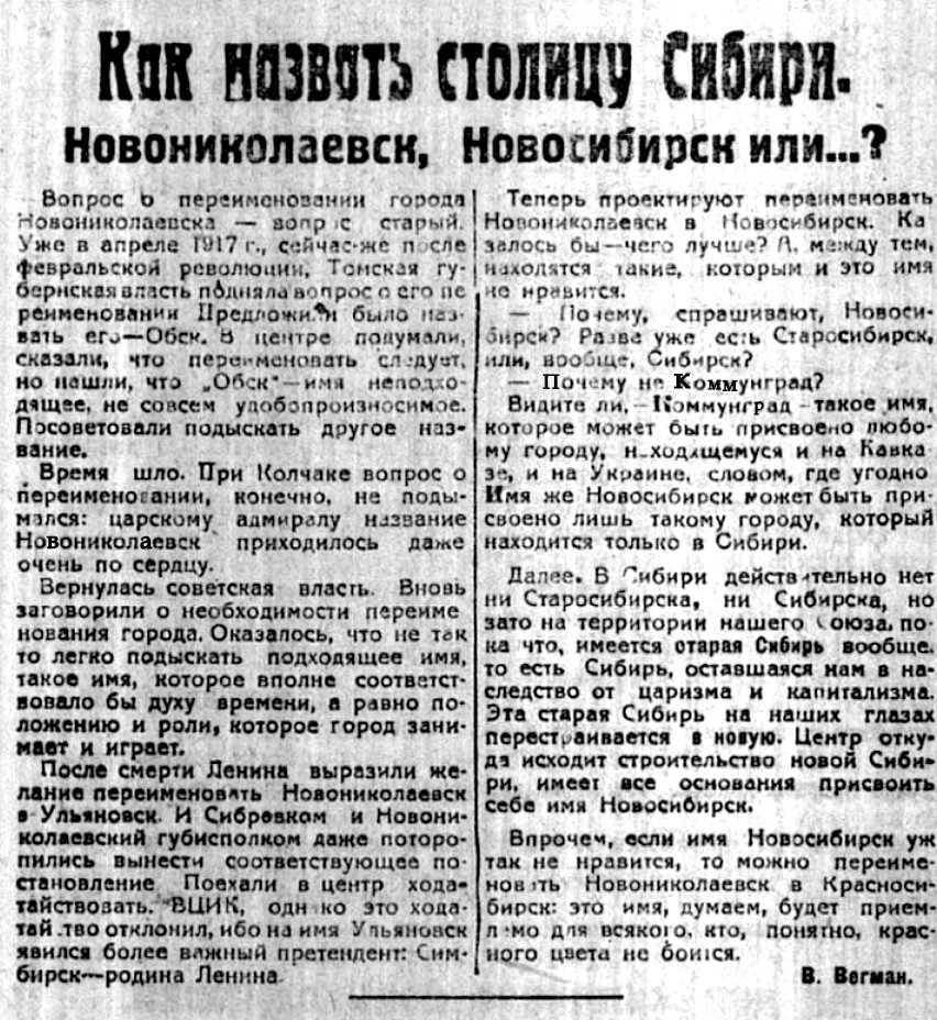 Статья В.Вегмана в "Сов.Сибири" от 29 ноября 1925 г.