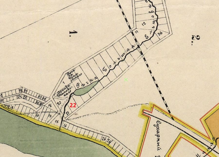 Оказывается, эта прямая дорога от остановки ДАЧИ до района остановки ДОМ ЛЕСНИКА была проложена в бору именно тогда - ещё при царе. На плане она именно такая же, как и сейчас. Специально тогда её сделали.