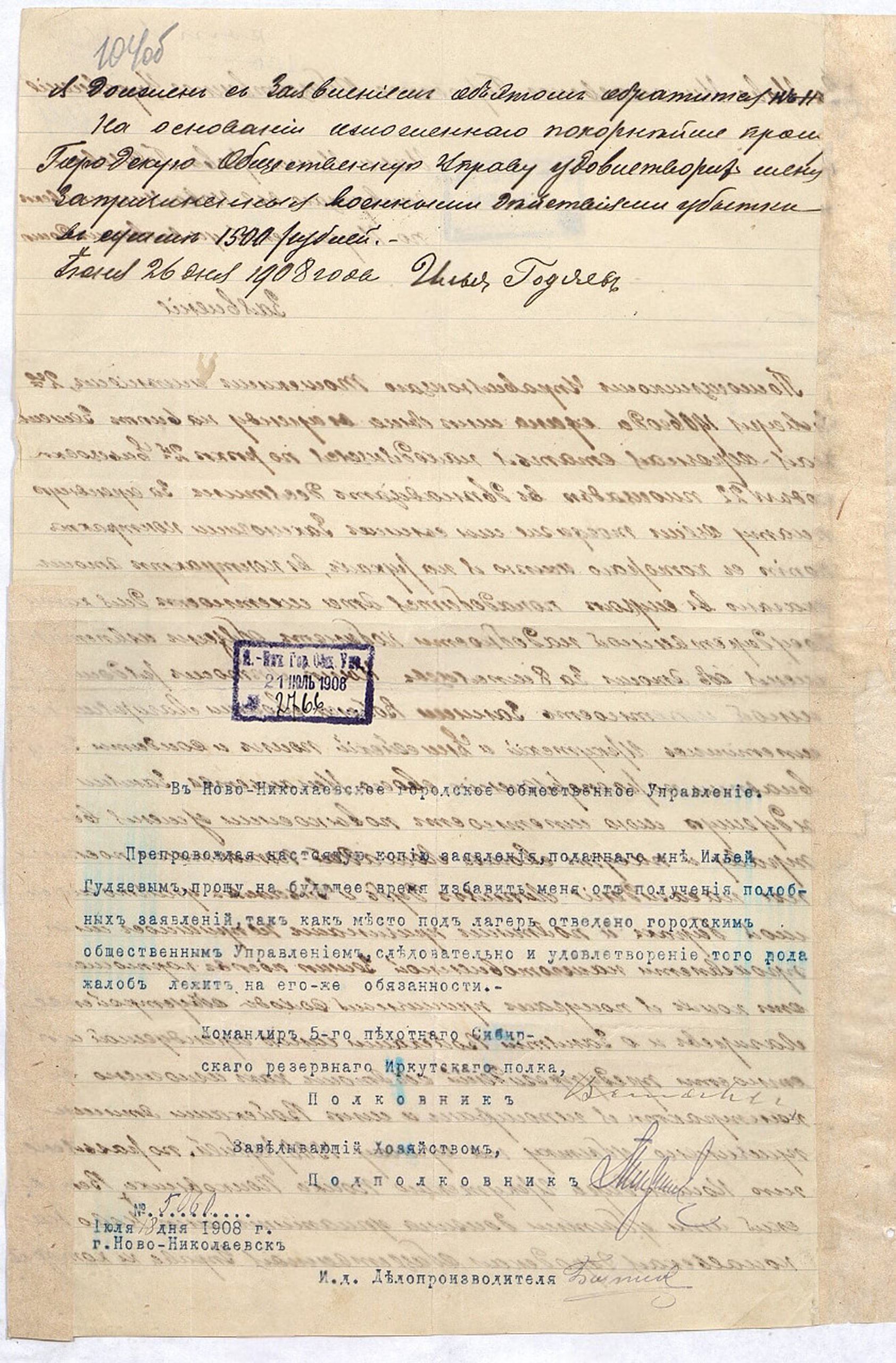Насколько я помню в 1909 дума отказали в предоставлении земли между Ельцовками - самим нужна, и разрешила поставить там лагерь только в 1915-м