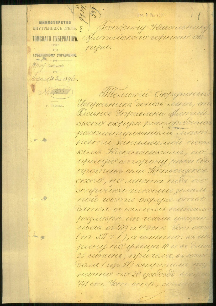 Вот из ГААКка рапорт в Кабинет 13 марта 1897: