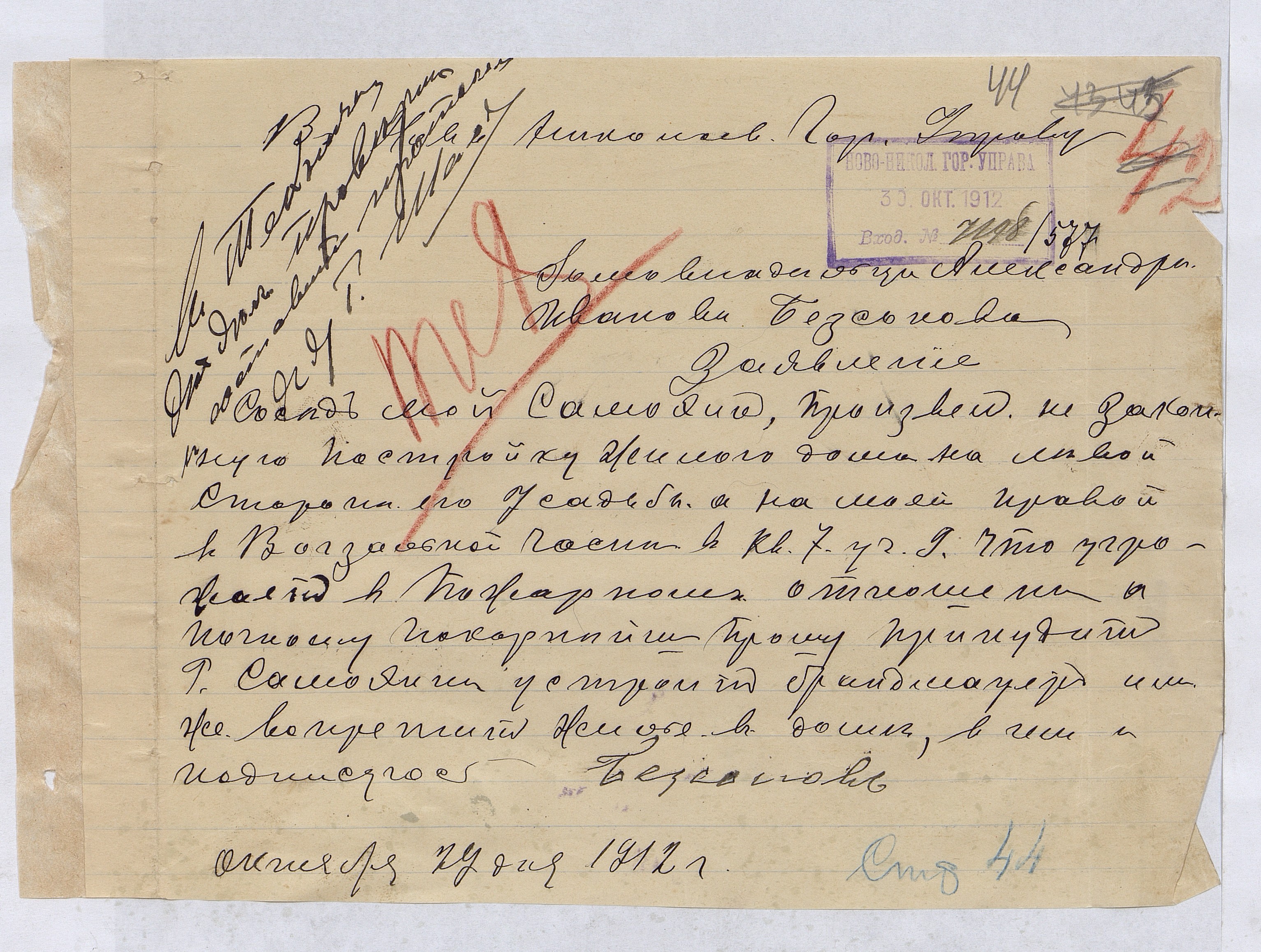 Но на днях нашла вот это заявление Безсонова от октября 1912 года опять с претензиями к Самохину. Здесь он называет участок Самохина под № 9. По-прежнему ошибается с №№ участков? Или что?