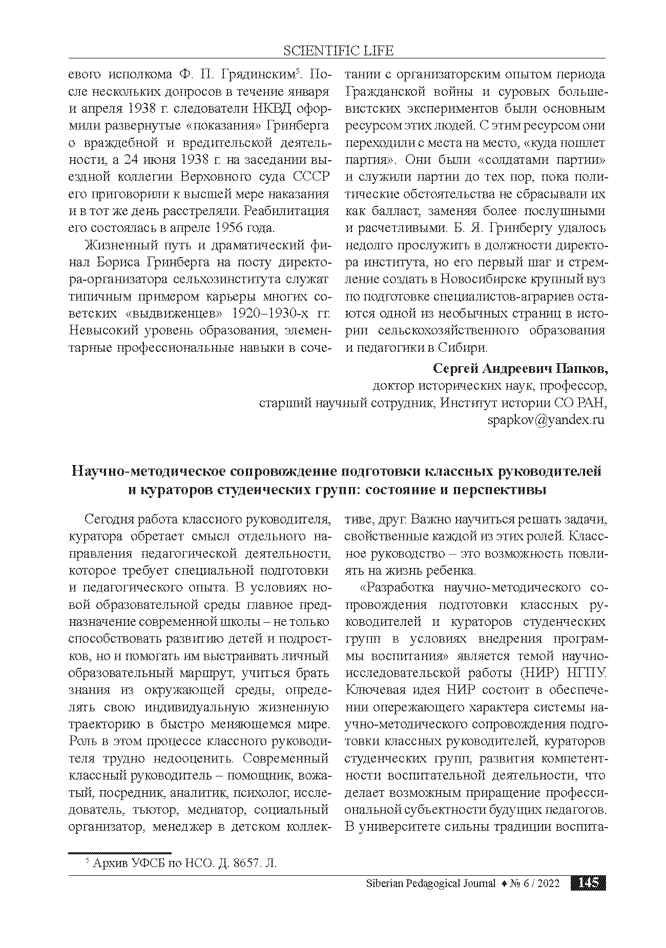 История педагогической науки и образования в Сибири складывается в общую картину благодаря изучению не только системы учреждений и институтов, но также в результате последовательного описания истории незаурядных творческих личностей, усилиями которых создавались образовательные и исследовательские центры по формированию профессиональных кадров и научных школ.