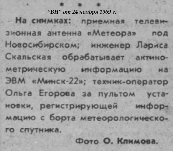 С марта 1969 года под Новосибирском начала начала работать советская метеорологическая космическая система «Метеор».