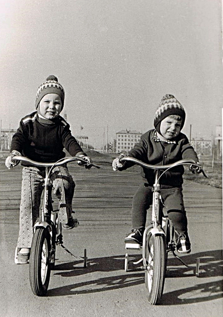 Про велосипед отлично сказано, а вот место пока не определено. С датой Вы почти угадали, год был юбилейным и за мальчишками видны флаги.