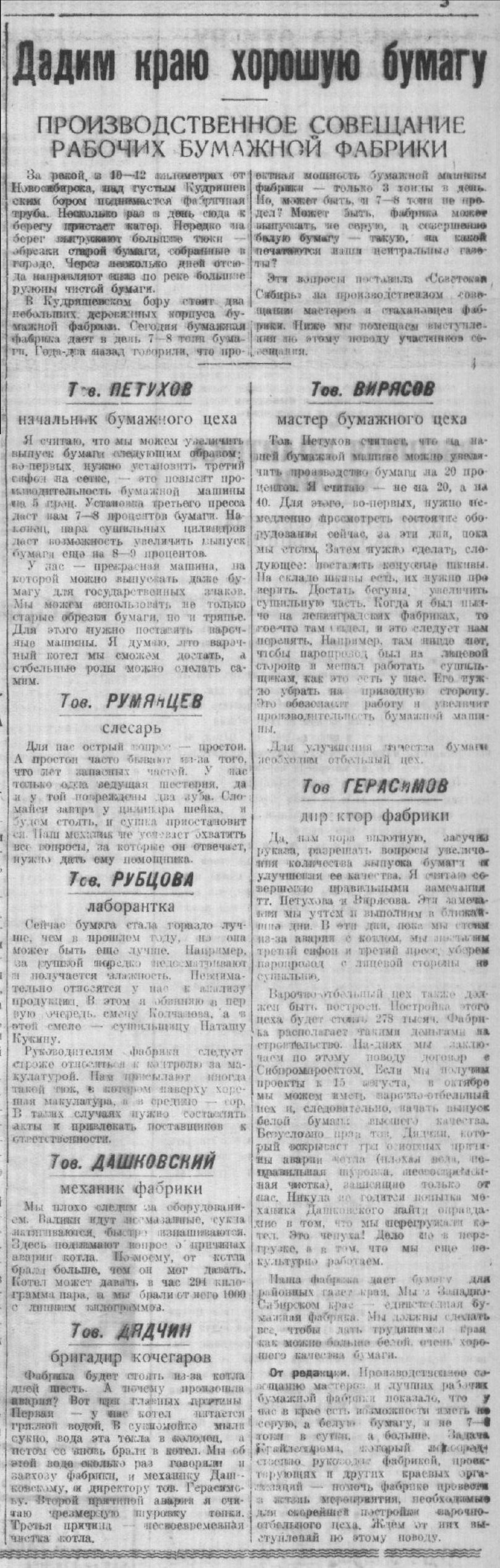 Нашёл в инторнетах, что в Кудряшовском посёлке в 30-м году решили возвести бумажную фабрику