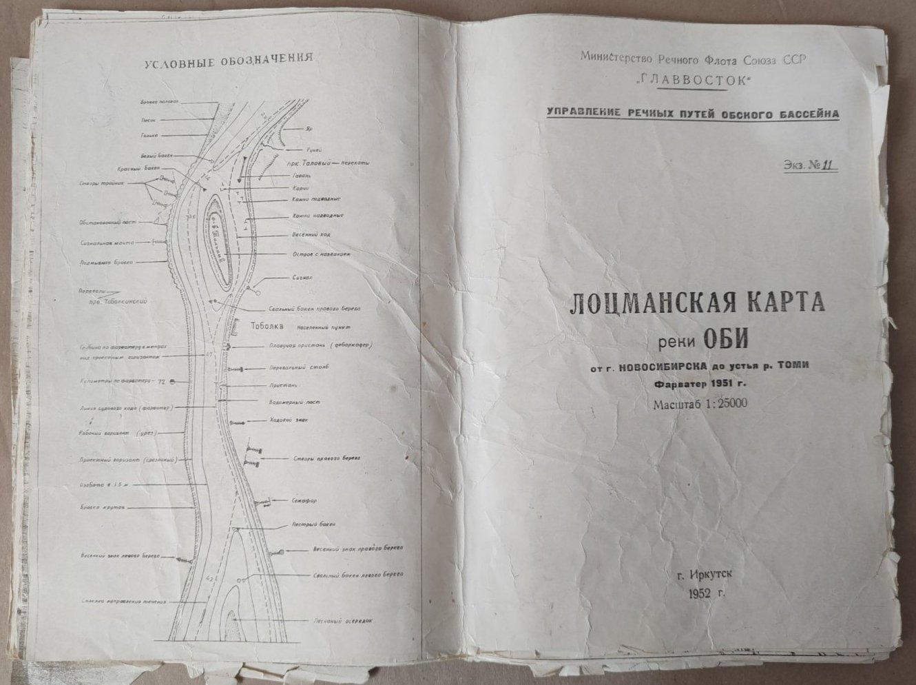 Лоцманская карта 1960 года (Новосибирское водохранилище и р. Обь)