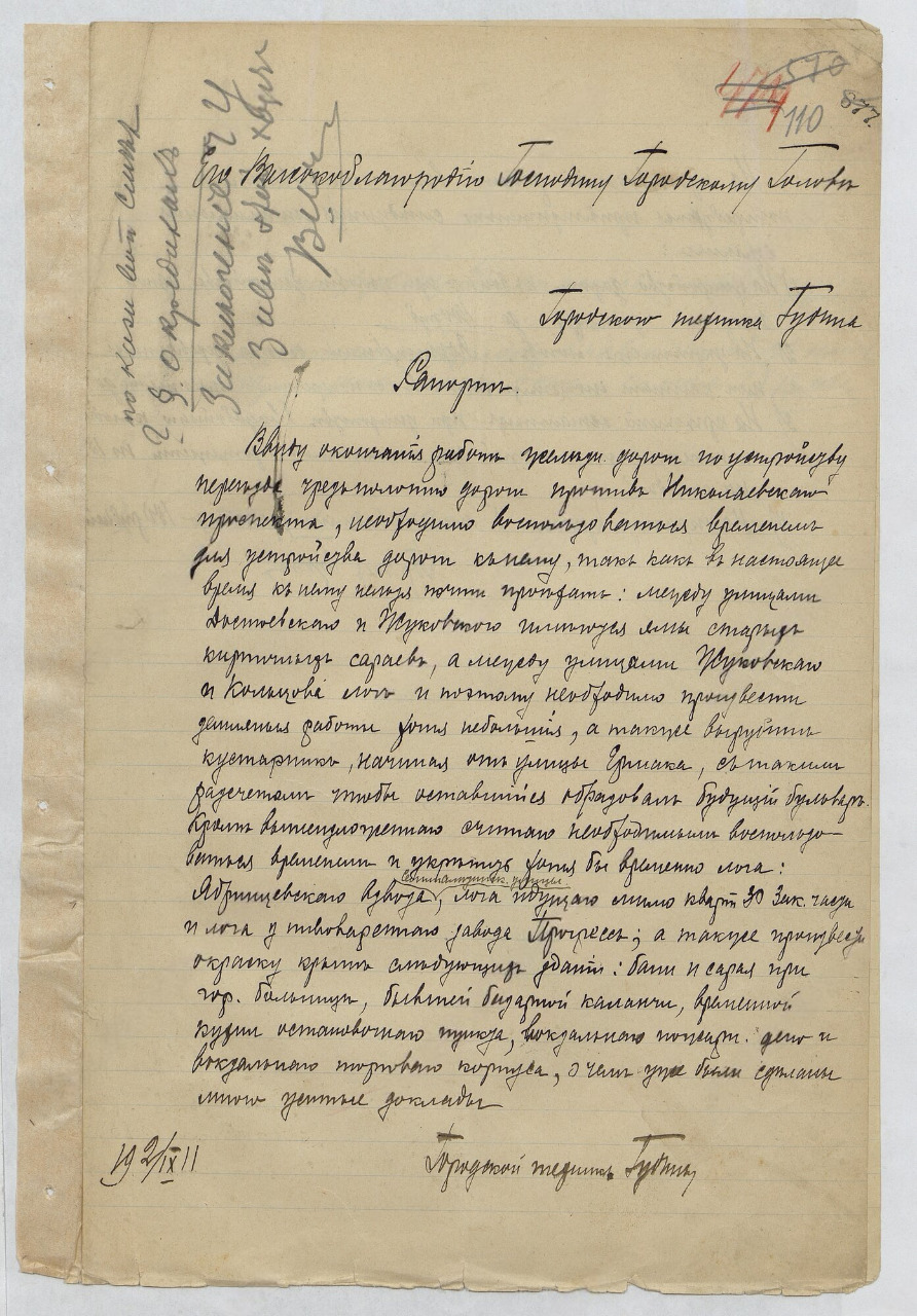 Ещё и такое из декабря 1911-го от городского техника Губина, в которой говорится (самом конце) о необходимости покрасить крышу на городском Вокзальном корпусе. Изначальной покраски масляной краской хватило на 3 года, получается.
