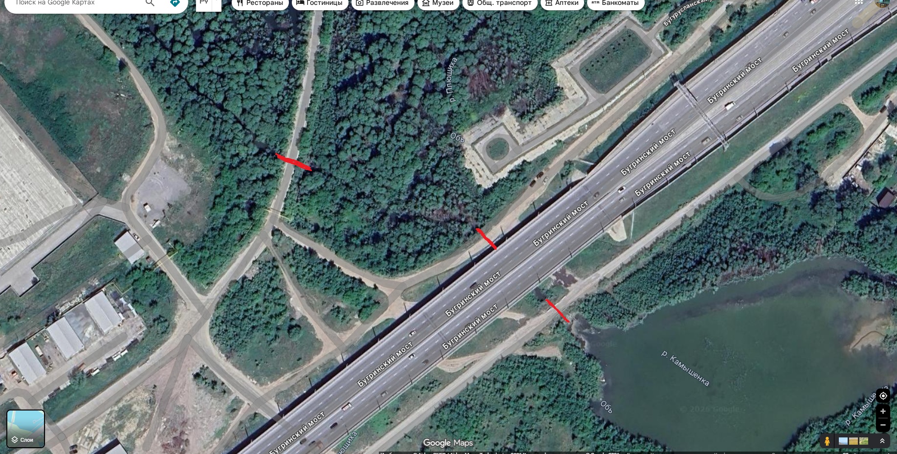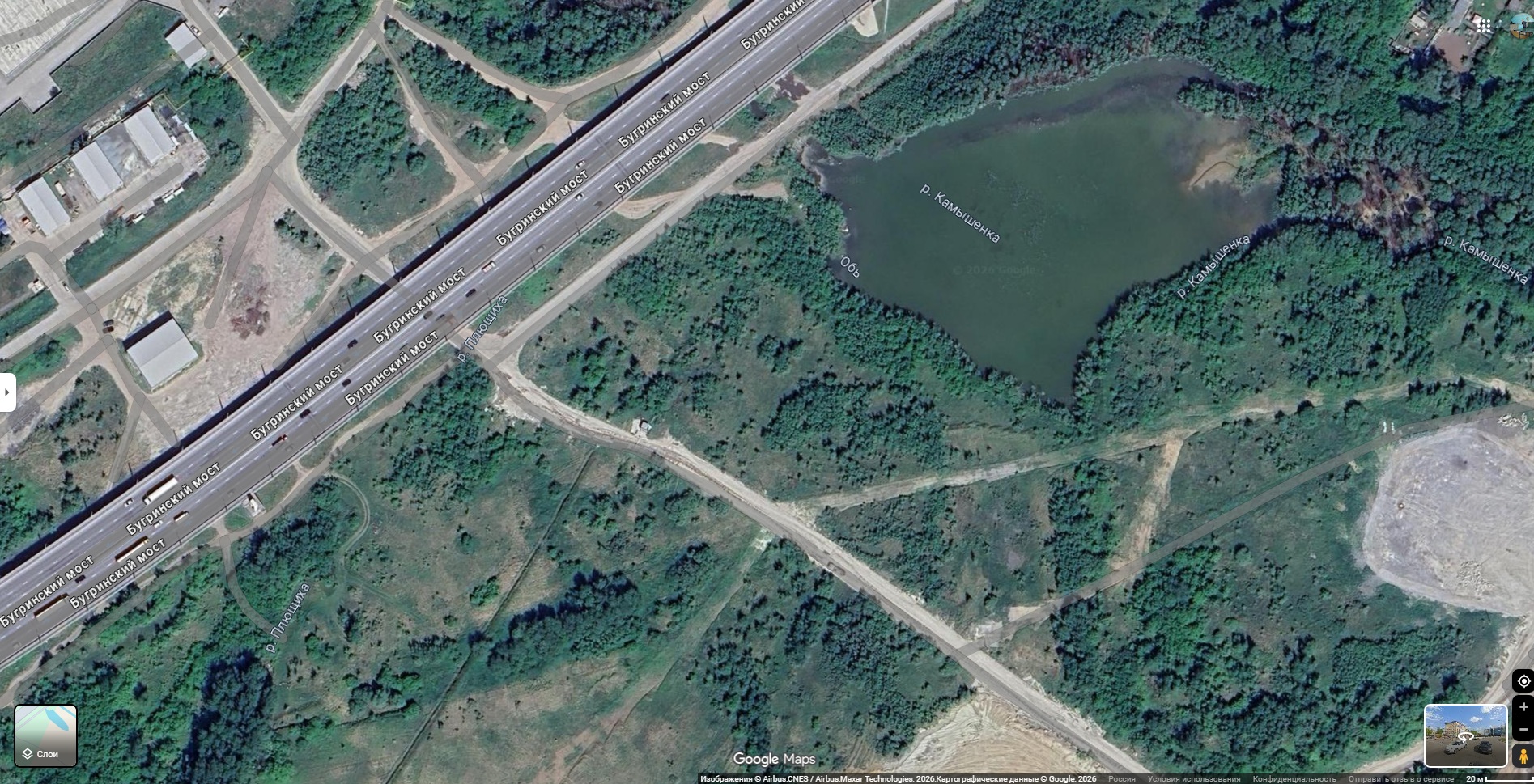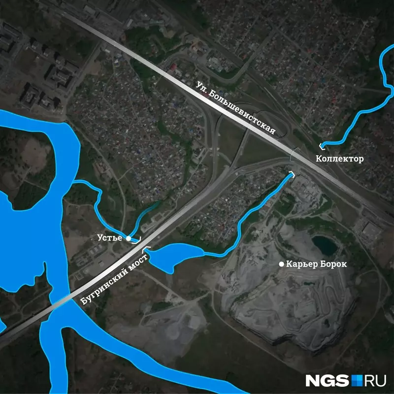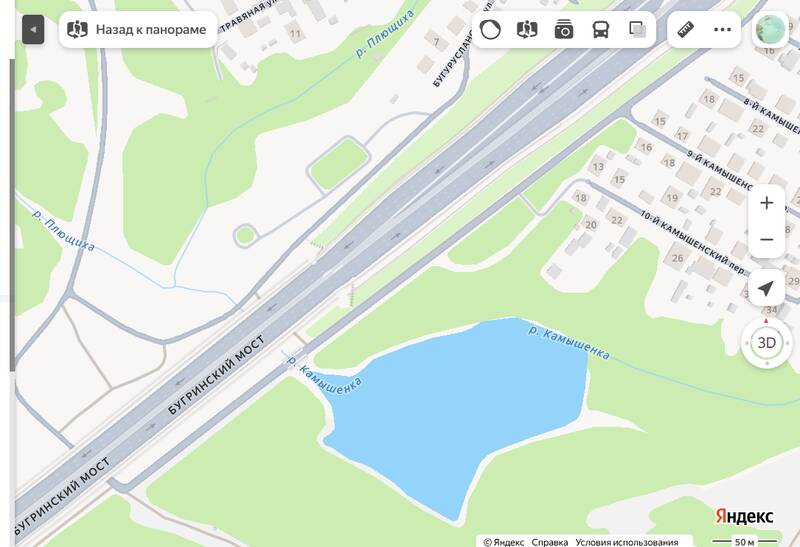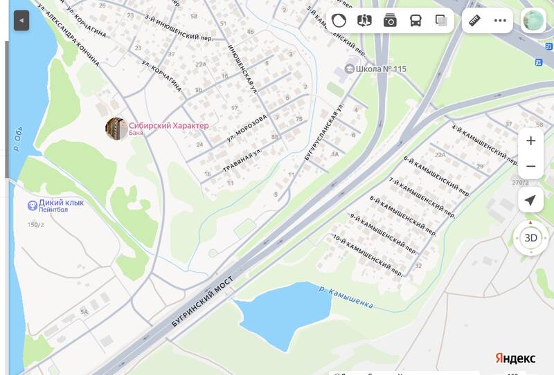 • Локация: Водоем находится в районе Бугринского моста, где Камышенка впадает в Плющиху, а затем в Обь.