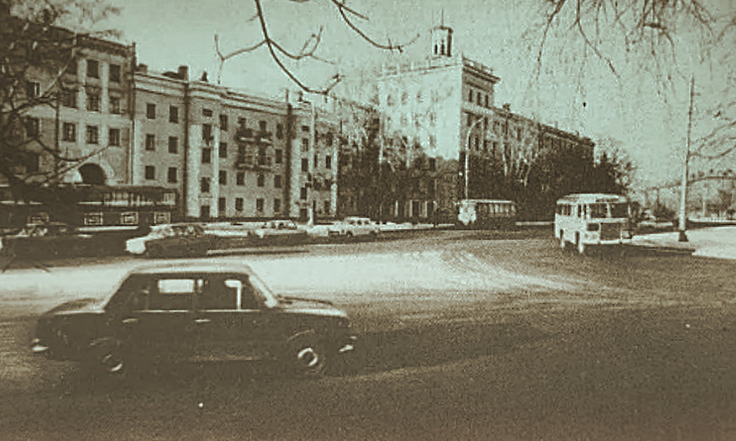 Площадь Кондратюка асфальтируют. Автобус, вероятно, 8ка с Академгородка на конечную Фрунзе приехала. Вдали видно 12ти-этажку Гоголя, 6.