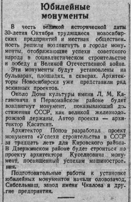 Глянул поиском несколько последующих лет газеты, но ничего ни про какой-либо из памятников/монументов в честь 30-летия не попалось.